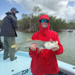 As we get into hot summertime patterns and both our water temperatures and air temperatures begin to warm up our fishing in Flamingo heats up too. During our summer months targeting snook and redfish along the Cape Sable and up the Coast is one of my favorite things to do during these months. I like to pull the boat up close to shore along cape sable and using my trolling motor to slowly work the shoreline looking for snook cruising the surf while we blind cast for anything siting inside the shoreline and the boat that we can’t see. I like casting swim baits and jerkbaits the best when working the shorelines around cape sable and the coast. This time of the year we also find huge schools of permit still out in the gulf wrecks. A live crab on a small jighead or shrimp pattern artificial will work the best on these fish.