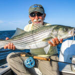 En los últimos años, he viajado a Provincetown, en Cape Cod, para visitar a mi familia, y durante estos viajes siempre he sacado tiempo para pescar con mi hijo Martini. Para nosotros, pescar en estas aguas es más que un pasatiempo: es una forma de conectar con el mar, el paisaje y con los demás. Nuestro objetivo favorito siempre ha sido la lubina rayada, un pez poderoso e icónico de las aguas de New England.