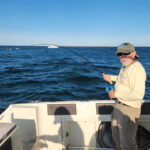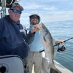 On my recent trips to Provincetown, I have witnessed this recovery firsthand. Fishing with Martini, we encountered large schools of striped bass, often so abundant that the water itself seemed alive. We caught and released many of them, each fish powerful and healthy, a sign of the population’s resilience. Watching Martini battle a strong bass filled me with gratitude—not just for the day, but for the decades of effort that made such moments possible.