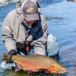 Cuando llegamos en septiembre, el Barrancoso se había calmado, pero las huellas del cambio eran evidentes. Grandes rocas que antes yacían en lo profundo del cañón habían sido reubicadas, formando nuevas pozas donde la trucha arcoíris ya había comenzado a establecerse. Exploramos estas áreas reformadas y las encontramos repletas de peces: brillantes y poderosas truchas arcoíris que reflejaban la resiliencia de la naturaleza misma. La pesca resultó ser extraordinaria, no a pesar de la inundación, sino gracias a ella.