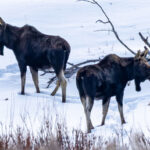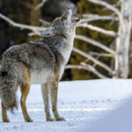 Yellowstone’s valleys and forests also revealed other remarkable animals. Coyotes could sometimes be heard before they were seen, their haunting howls echoing through the cold morning air. Along the edges of partially frozen streams, we spotted playful river otters sliding and darting through the water. Moose and elk moved quietly through wooded areas; their breath visible in the cold air. On open plains we encountered pronghorn antelope, while high on rugged slopes bighorn sheep navigated steep terrain with effortless grace.